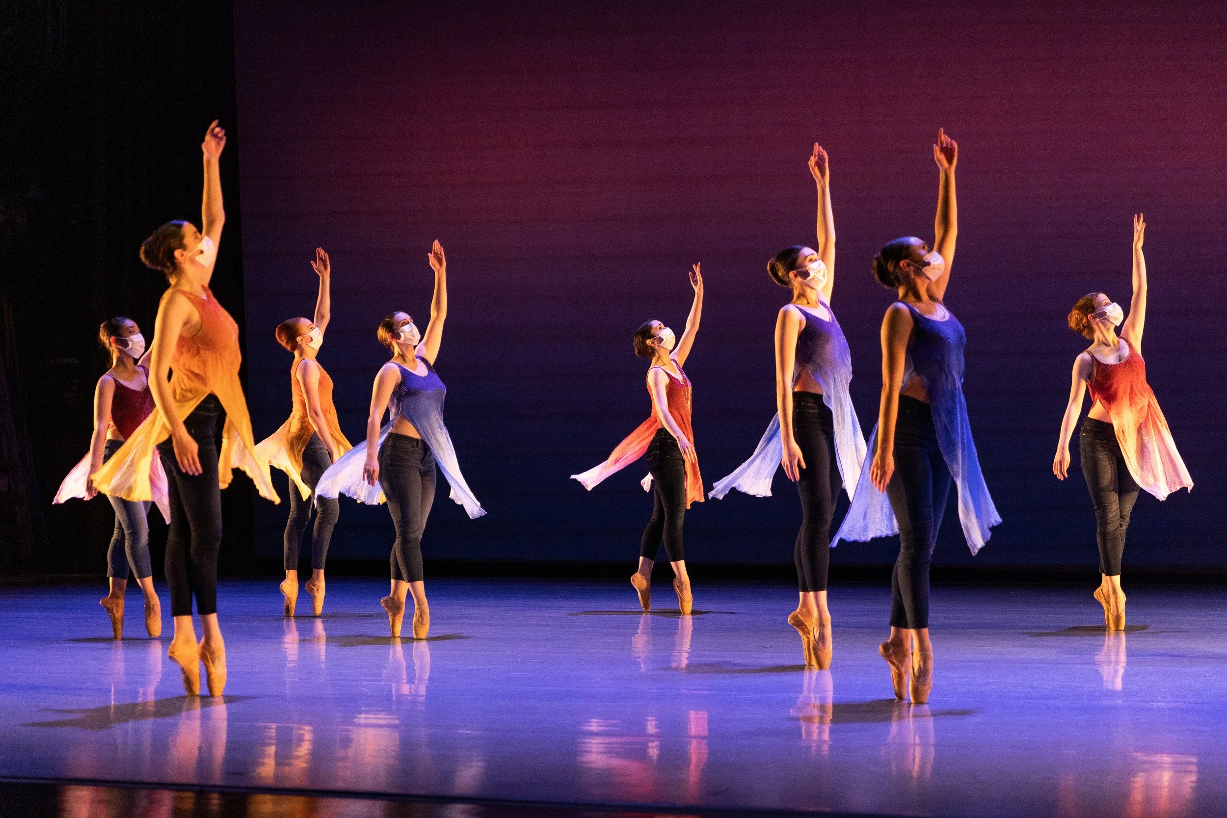 “In the time of…” is Cherylyn Lavagnino’s newest work created on and for the University of Utah’s Ballet Department in collaboration with colleague and composer Brian Pappal. This dance for 13 women en pointe is Lavagnino’s response to the sense of loss, both literal and potential, we are communally experiencing. Lavagnino is tuning into the emotional weight women are carrying as they grapple with the ongoing COVID-19 pandemic coupled with the political turmoil surrounding women’s rights. Finding strength and support through community, this dance reflects the healing and empowerment women provide one another.